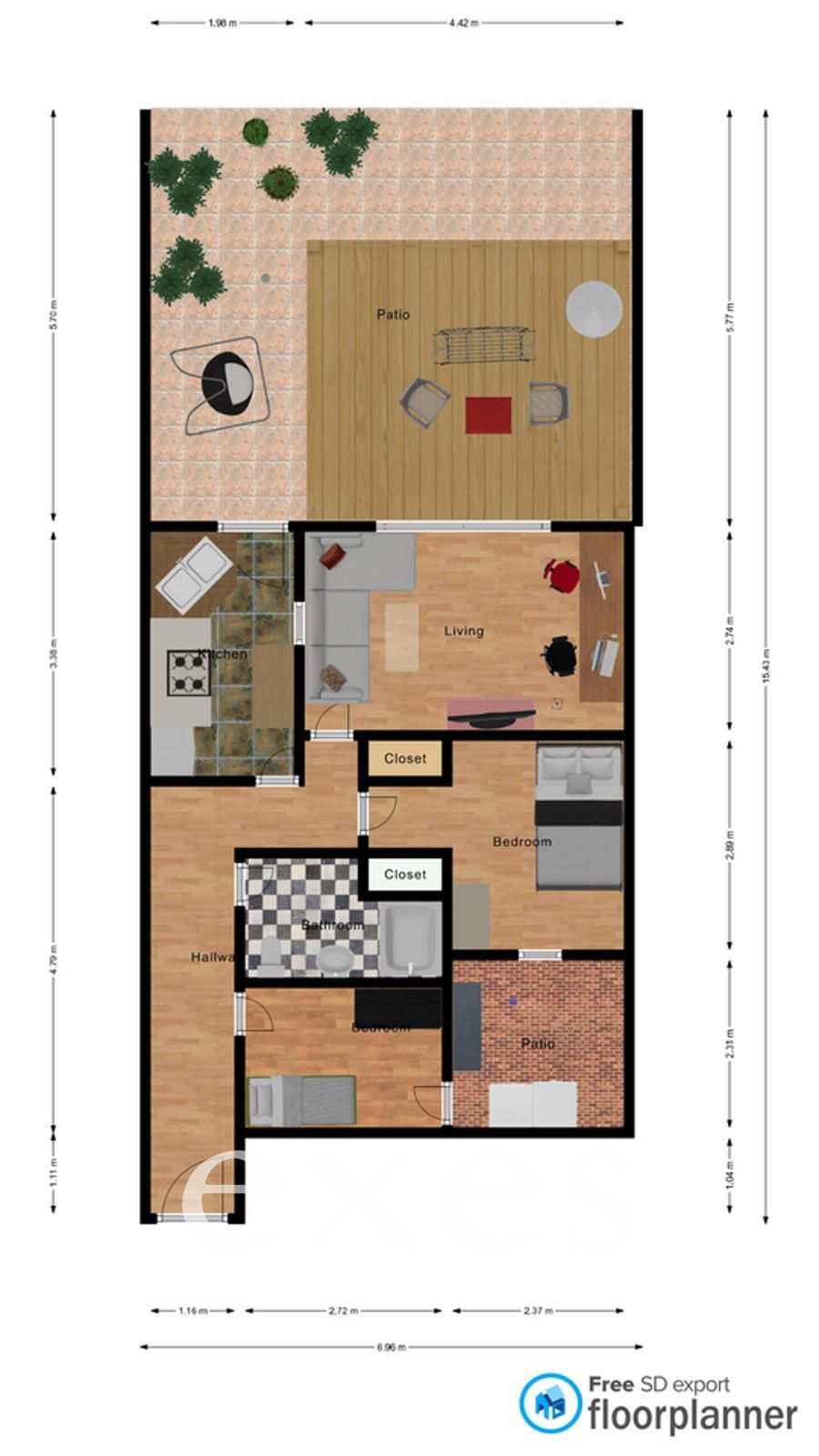 , 2 rooms and 1 bathrooms and Air conditioning.