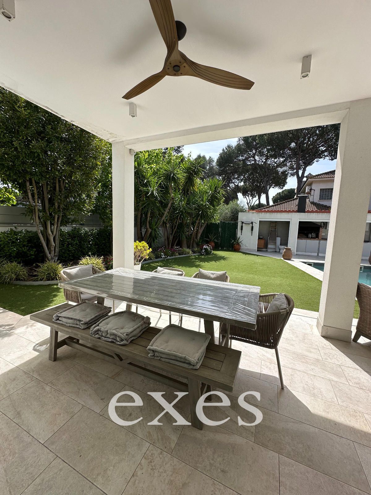Los espacios exteriores elevan la experiencia residencial a un nuevo nivel: una refinada piscina privada, jardines cuidados al detalle, baño exterior y una zona de cocina al aire libre con barbacoa, pensada para disfrutar del clima mediterráneo en un entorno íntimo y distinguido.