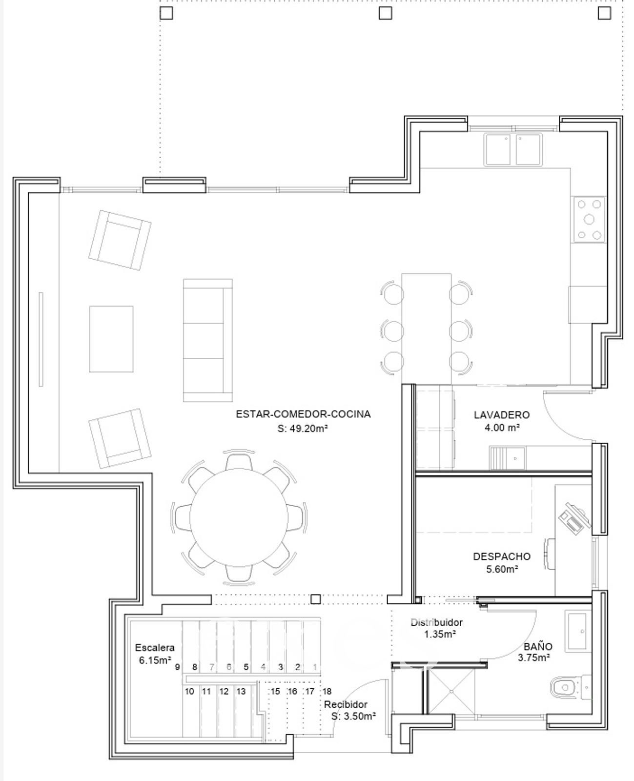 En el interior, la planta principal alberga un amplio salón de líneas contemporáneas con cocina office integrada, equipada con electrodomésticos de alta gama y un innovador sistema de extracción mediante campana de techo con tecnología inteligente, que combina eficiencia y diseño. Esta planta se completa con zona de aguas, una elegante suite y accesos independientes —principal y de servicio— que aportan funcionalidad y privacidad.